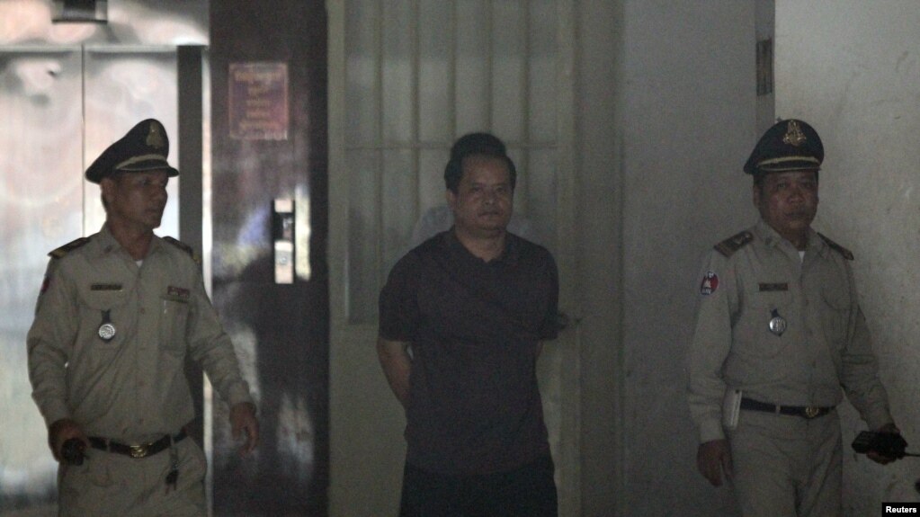 លោក សួន សេរីរដ្ឋា ប្រធានគណបក្សអំណាចខ្មែរ ឯតុលាការរាជធានីភ្នំពេញ នៅថ្ងៃទី១៤ ខែសីហា ឆ្នាំ២០១៧។ (REUTERS)