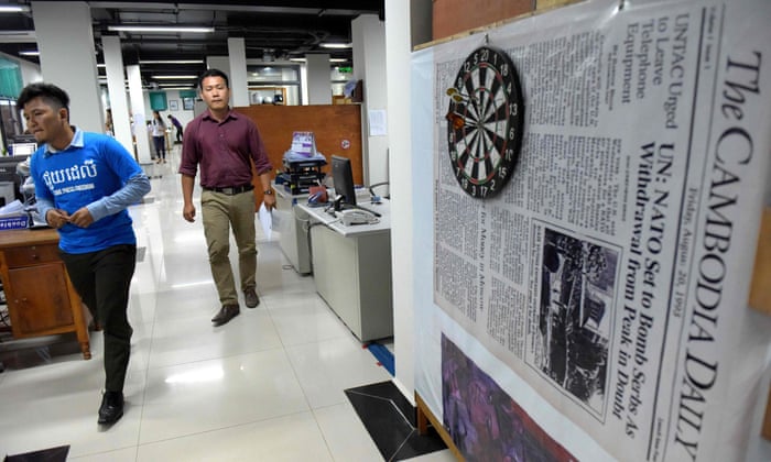 One of Cambodia’s most stridently independent newspapers, the Cambodia Daily, published its last edition on Monday with the headline “Descent Into Outright Dictatorship” as it closed amid a crackdown on critics of prime minister Hun Sen.