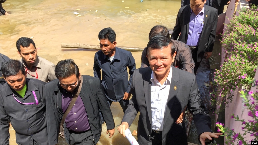 លោកកឹម សុខា អនុប្រធានគណបក្សសង្រ្គោះជាតិដើរចេញពីការិយាល័យចុះឈ្មោះបោះឆ្នោតនៅខណ្ឌមានជ័យ រាជធានីភ្នំពេញនៅថ្ងៃពុធ ទី០៥ ខែតុលា ឆ្នាំ ២០១៦។(កាន់ វិច្ឆិកា/VOA)