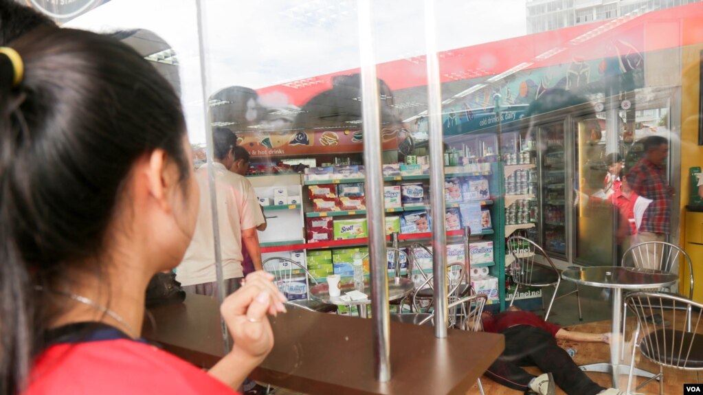 FILE: Kem Ley body laid down inside the mart. Kem Ley, a Cambodian political analyst was shot death on Sunday, July 10, 2016 at a gas station in Phnom Penh. ( Leng Len/VOA Khmer)