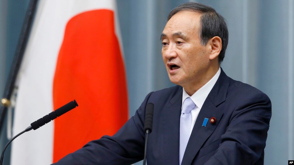 FILE PHOTO - Japan's Chief Cabinet Secretary Yoshihide Suga speaks during a press conference to announce the new line up of Cabinet at the prime minister's official residence in Tokyo, Thursday, Aug. 3, 2017.