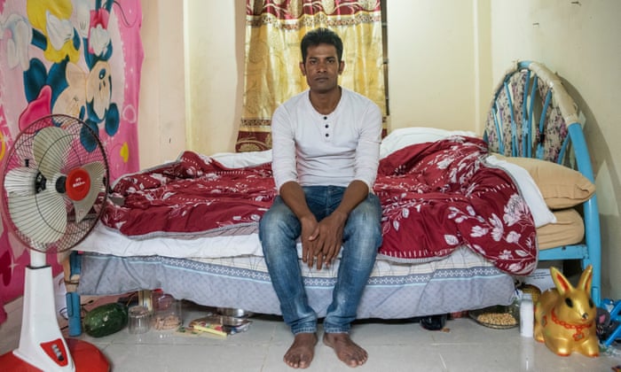 Mohammed Rashid in his rented single ground floor room in a village outside Phnom Penh. Photograph: Simon Toffanello/The Guardian